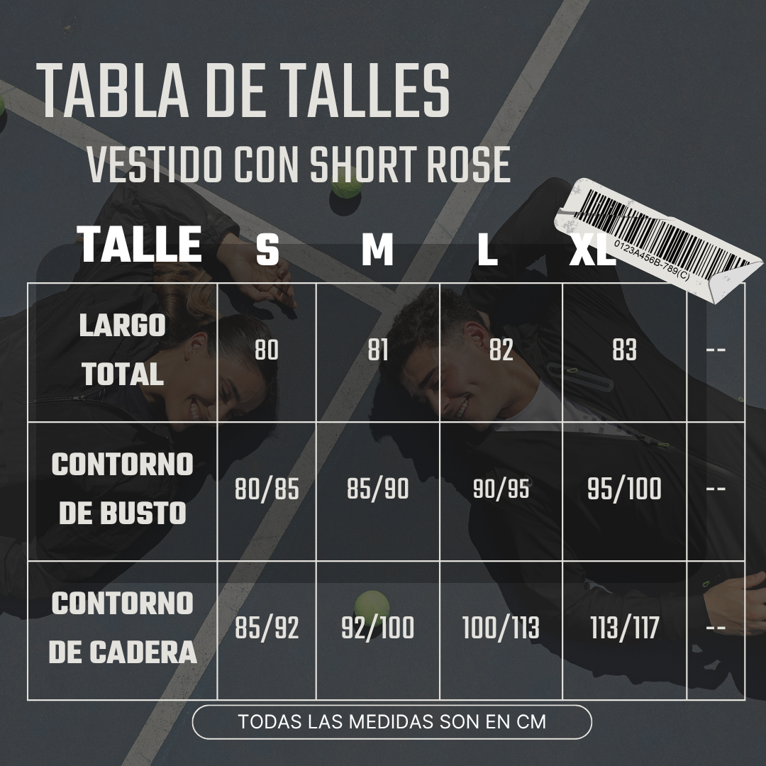 Descubrí el Vestido Rose, un diseño pensado para acompañarte con comodidad y elegancia. Este vestido deportivo incluye short integrado y está completamente forrado, con tazas internas en el busto para un soporte ideal.